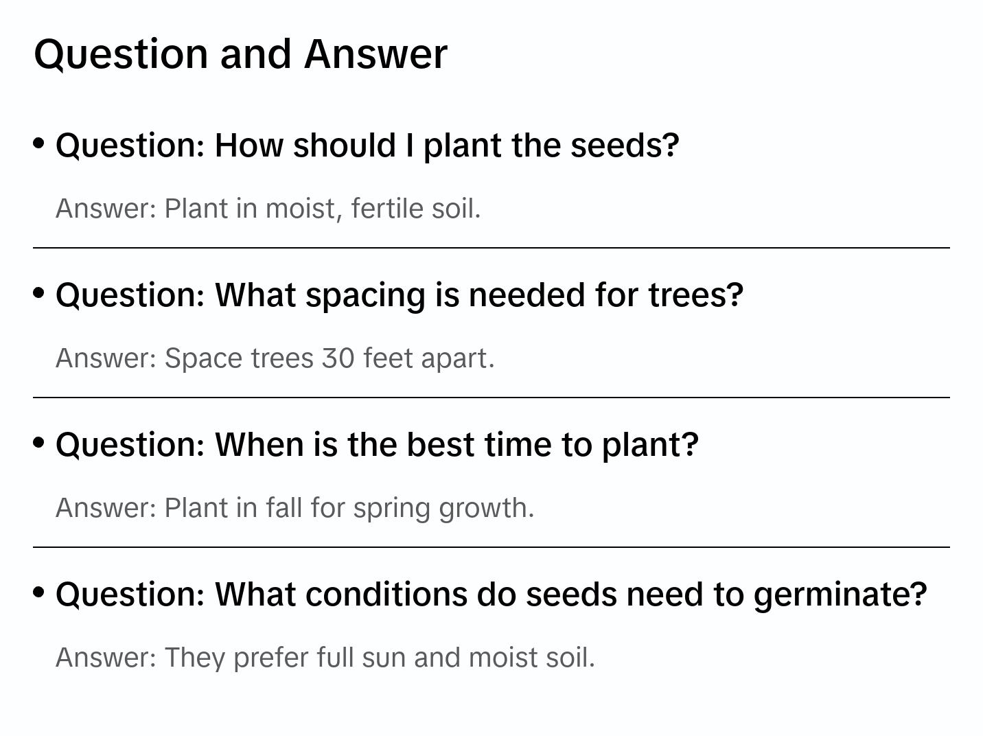 5. Harvesting: Trees are living investments that grow with your family. Expect seedlings to reach 6-12 inches in the first year. Many trees provide shade, beauty, and habitat for decades.