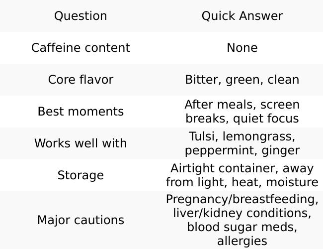 - Don't over-steep — bitterness comes from over-extraction, not the herb itself